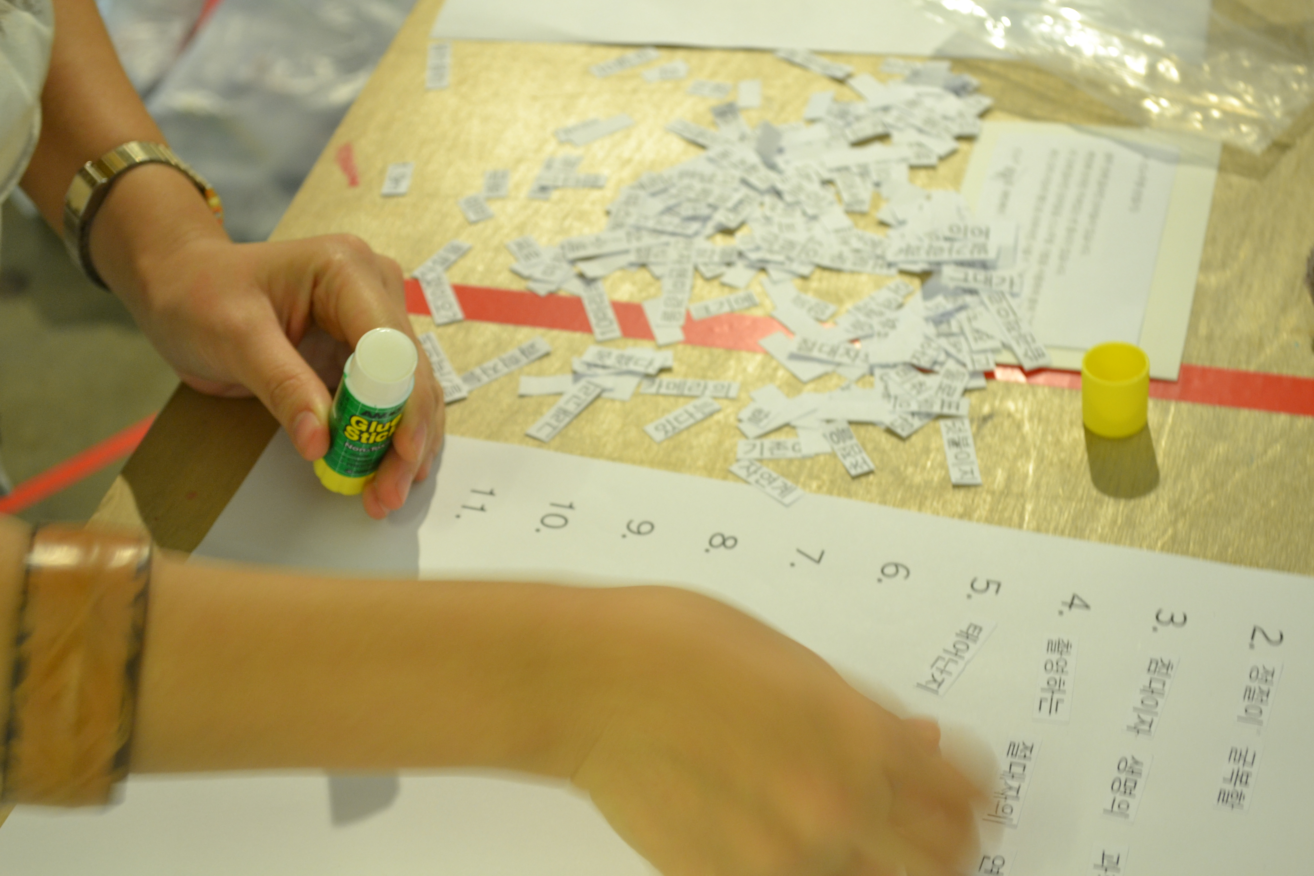 참여하는 퍼포머들 외에도, 관객들이 직접 시를 만들어 보는 구간이 마련되어 있습니다: